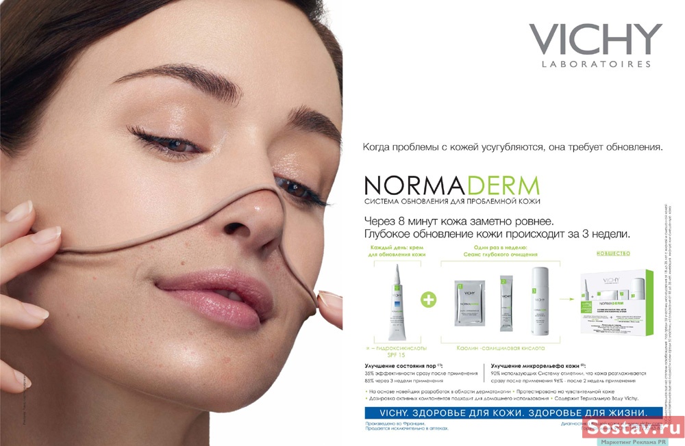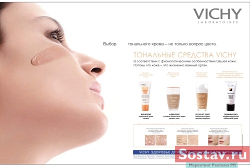 Рекламные образы VICHYКак стало известно Sostav.ru, VICHY запустил рекламу новой линейки тональных кремов. Отдельными принтами вышла реклама тональных средств для проблемной кожи: Normateint - для жирной кожи, и комплекс Normaderm., целевая аудиториях которых, по словам представителей бренда, молодые женщины от 18 до 30 лет. Остальные же тональные кремы: для сухой кожи, для смешанной, для зрелой кожи и, наконец, для корректирующего тонального крема, решили объединить в одном рекламном блоке. Как объяснили Sosatv.ru, такая объемная реклама дает возможность покупательницам сразу определится в выборе средства. Рекламная кампания будет длиться два месяца, размещаться она будет в глянцевых журналах, ориентированных на женскую аудиторию. Креативная концепция принадлежит агентству EuroRSCG. Напомним, что французская группа EuroRSCG с 2003 года ведет бренд Vichy, принадлежащей компании L'Oreal. Прошлые рекламные кампании Кампания 1999 года Рекламная кампания 2005 года Марина Золотая, Sostav.ru |