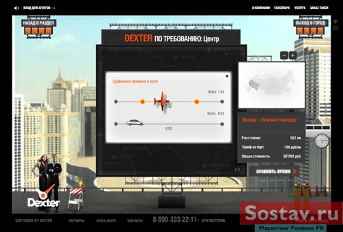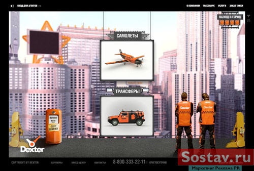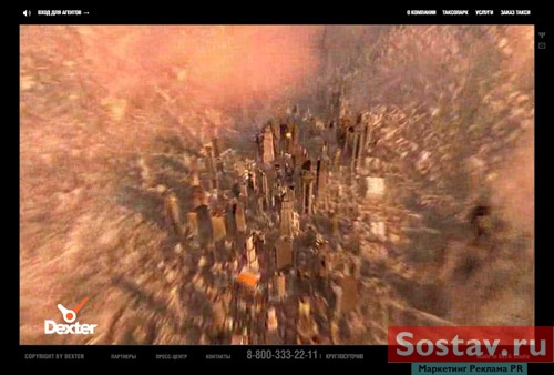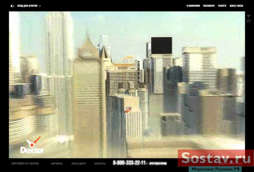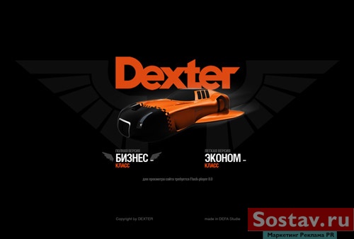 DEFA studie открыла сайт, обещавший стать самым амбициозным проектом рунета27 ноября DEFA studie анонсировала запуск новой версии корпоративного сайта Dexter, которая обещает стать самым громким и амбициозным проектом в русском Интернете. Запуску сайта предшествовала необычная PR-кампания: приглашения посетить новый сайт были изготовлены в виде стилизованной афиши, а по адресу www.dexter.ru до сегодняшнего дня размещался рекламный трейлер, выполненный в традициях классических анонсов новых кинокартин. Целью кампании было заявить инновационный подход к разработке проекта и показать аналогию с созданием полноценного масс-медиа продукта на примере кино. Такая аналогия тем более уместна, поскольку для создания сайта использовалась профессиональная игровая видео-съемка. Трейлер транслировался на сайте, а также через сервисы YouTube и RuTube. За две недели до запуска сайта трейлер был просмотрен около двадцати тысяч раз. Затраты на эту PR-кампанию составили ноль долларов. 15 марта в 17:30 новая версия корпоративного сайта Dexter открылась. Сайт представляет собой интерактивный видеофильм, построенный на базе фантастических видов будущего Земли. Главным героем сайта является авиа-такси Dexter : повседневный для XXV века вид транспорта, связывающий между собой разные города планеты.