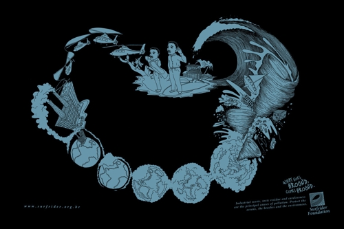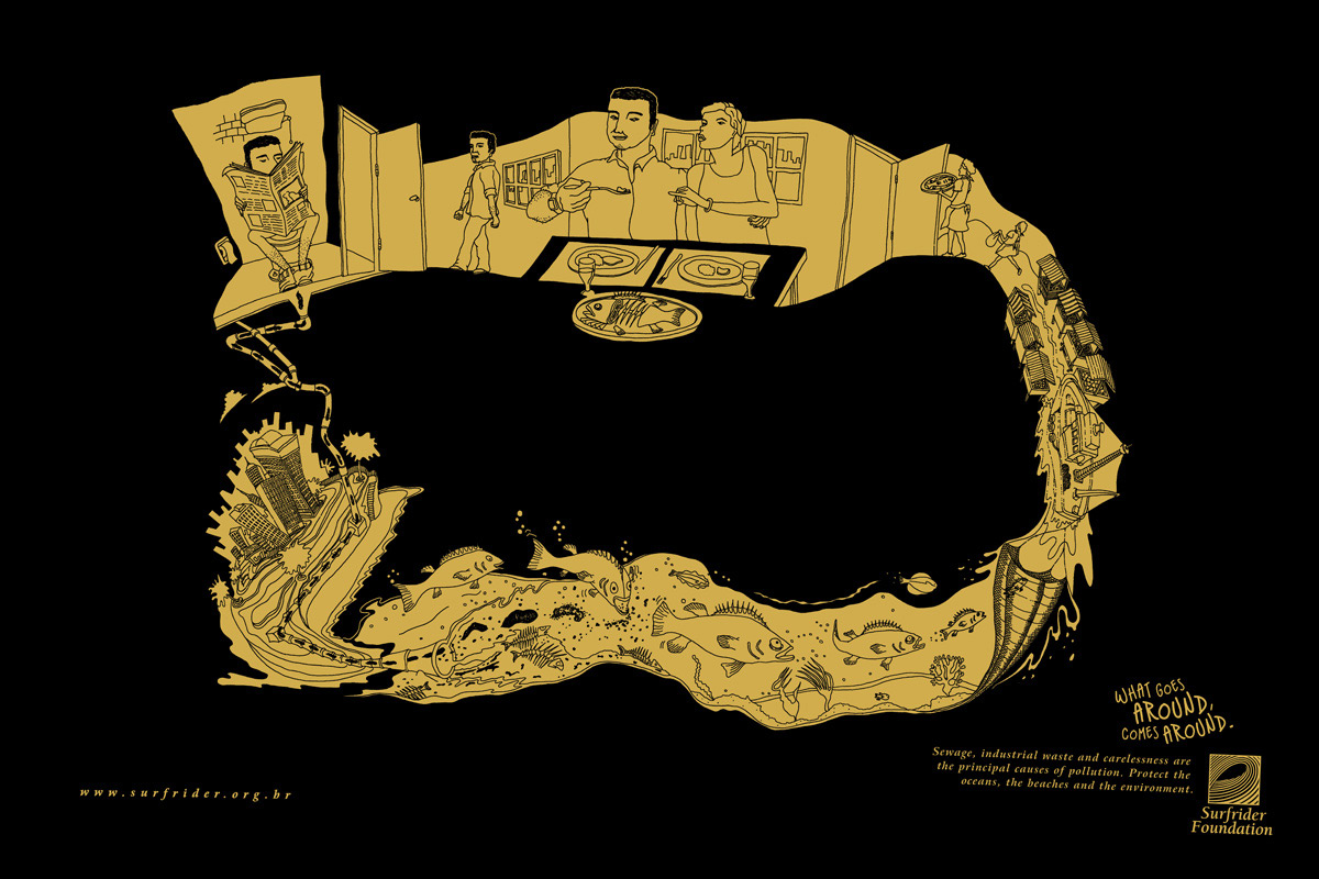 УроборосЗаметно, что в последнее время самые креативные плакаты и самые лучшие иллюстрации приходят из пласта некоммерческих проектов. Серия, сделанная агентством Script для Surfrider Foundation Brazil — не исключение. Слоган кампании — «What goes around, comes around», переводящийся как нечто среднее между «Что посеешь, то и пожнёшь» и «Круговорот воды в природе». Собственно, из картинок всё и так ясно. Смотрите сами.Агентство: Script, Рио де Жанейро, Бразилия Креативный директор: Ракардо Риал (Ricardo Real) Арт директор: Бернардо Ромеро (Bernardo Romero) Копирайтер: Даниель Дуарте (Daniel Duarte) Иллюстратор: Отавио Риос (Otavio Rios) www.scriptonline.com.br KAK.RU |