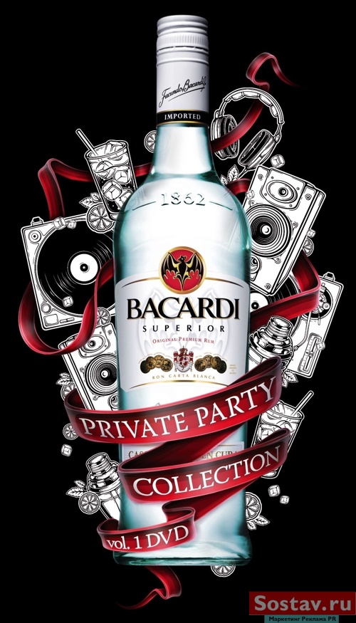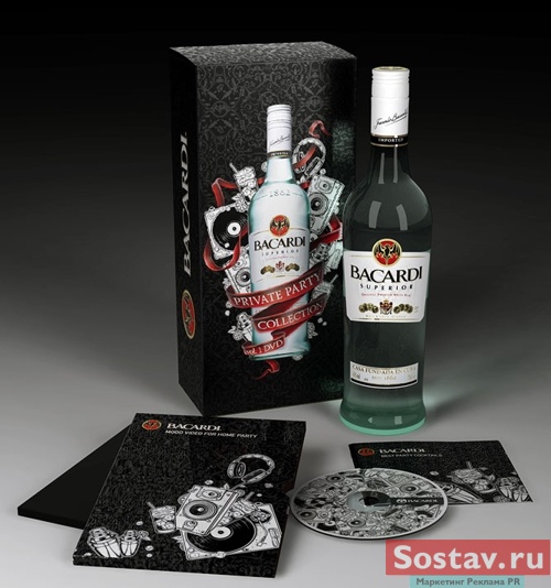 Полный комплект для вечеринки в коробке BacardiСтудия "Парк" создала дизайн упаковки для рома Bacardi снабдив содержимое коробки всем необходимым для проведения домашней вечеринки. В одной коробке собраны все ингредиенты для проведения частной вечеринки: бутылка рома Bacardi, диск с видео и рецепты коктейлей, виниловые проигрыватели, шейкеры, колонки, мята и лайм (последнее лишь нарисовано). Выдержанное в традициях эффектного гламура оформление, по замыслу, позволит создать нужное настроение в любой компании. Состав творческой группы Арт директор: Зенков Анатолий Дизайнеры: Вадим Мармеладов Менеджер: Анжелика Петроченко