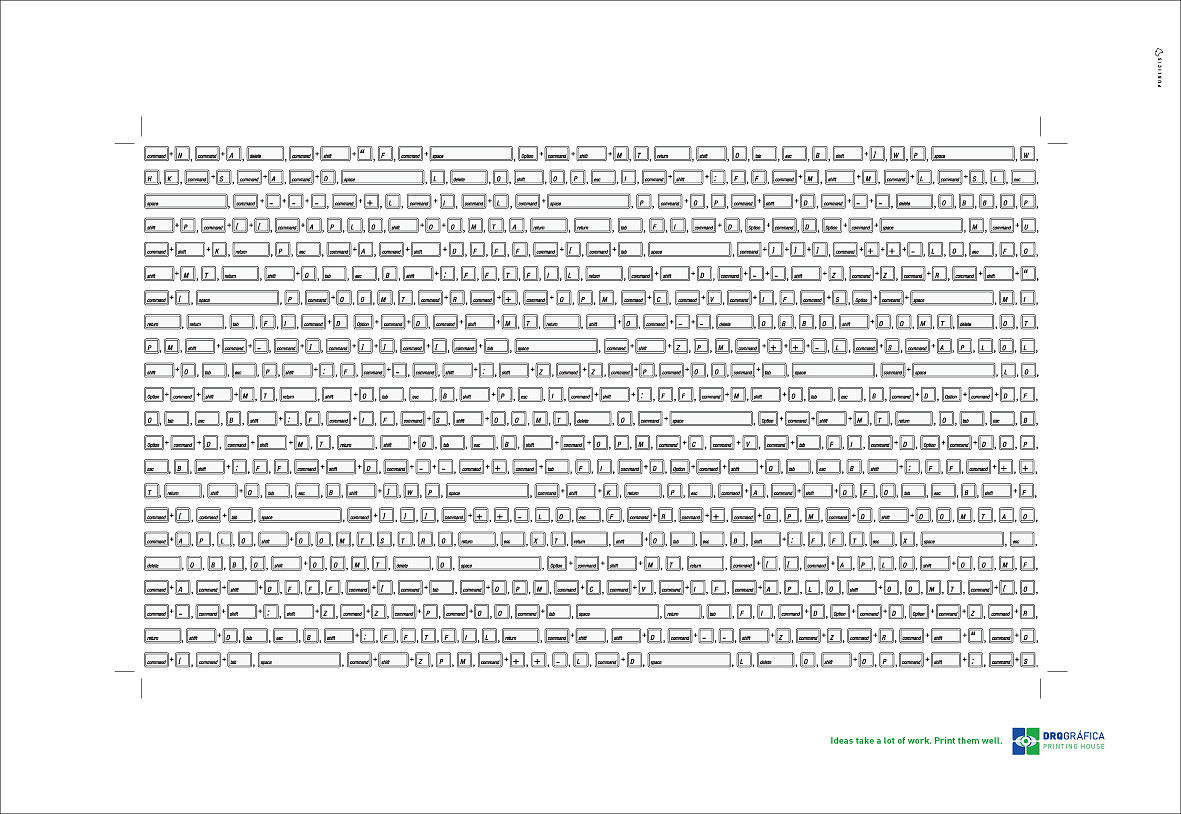 Реклама печатного дома DRQ GRÁFICA от агентства Publicis БразилияСоздавая какое-либо графическое решение, вы можете десятки раз использовать разнообразные инструменты графического редактора, сотни раз нажимать на клавиши клавиатуры или долго лазить по меню. Но что вы будете делать с результатом, если его негде качественно распечатать? Бразильское агентство Publicis представляет вашему вниманию печатный дом DRQ GRÁFICA, который поможет качественно распечатать ваши шедевры. Надпись: "Идеи отнимают много работы. Распечатайте их хорошо." Агентство: Publicis, Бразилия Творческий директор: Marcelo Gianinni Арт директор: Filipe Raposo Копирайтер: Rodrigo Strozenberg |
