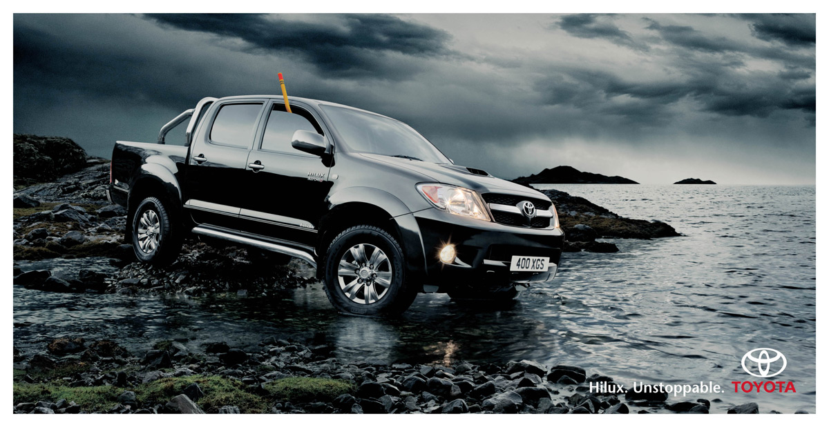 Агентство Saatchi & Saatchi: Toyota Hilux не остановитьАнглийское агентство Saatchi & Saatchi, создавшее этот рекламный плакат для Toyota Hilux, показывает нам, что для этого автомобиля нет преград. Но есть один минус, въезжая в водоем, вам придется использовать трубку для ныряния, чтобы дышать под водой. Надпись: Hilux. Неостановимый. Агентство: Saatchi & Saatchi, Лондон, Англия Главный творческий директор: Kate Stanners Творческий директор: Richard Denney, Dave Henderson Арт директор: Stanley Cheung Копирайтер: Jonathan Benson Фотограф: Dirk Karsten Ретушер: Firstbase |