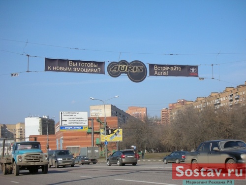 Нестандартные перетяжки ToyotaКомпания "Магистраль", специализирующая на разработке и размещении нестандартных перетяжек, воплотила в жизнь очередной проект. На этот раз для бренда Auris компании Toyota. Использование eye-stopper'ов (объектов, притягивающих внимание) - отличная возможность привлечь дополнительное внимание к рекламной кампании. Размещение 24-х перетяжек на магистралях Москвы по заказу Smart Communications началось 20 марта 2007г. |
