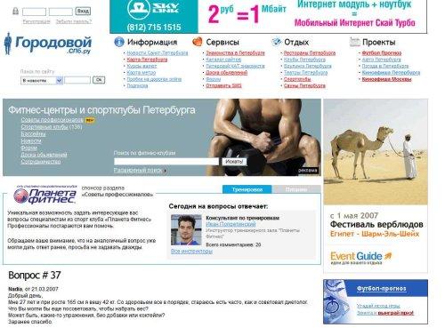Сеть спортивно-оздоровительных клубов «Планета Фитнес», активно использующая интернет-рекламу, пробует альтернативные инструменты коммуникации со своими потребителями в Сети. Совместно с информационно-развлекательным порталом Gorodovoy.spb.ru в рамках раздела «Фитнес» был разработан консультационный блок, который администрирует «Планета Фитнес».