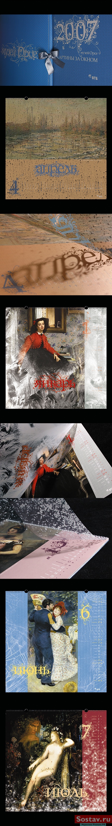 FRONT:DESIGN. "Картины за окном"В 2006 году при поддержке ВТБ состоялось значимое событие в культурной жизни России - выставка шедевров французской живописи и скульптуры из собрания музея Орсе. Неповторимая и оригинальная экспозиция музея, расположенного в самом центре Парижа, включает в себя широкую палитру художественных свершений за очень короткий, но необычайно плодотворный отрезок времени середины XIX - начала XX веков. Этой уникальной выставке был посвящен ежегодный календарь ВТБ, созданный студией FRONT:DESIGN. Задача продемонстрировать несколько полотен с выставки развилась в концепцию "Картины за окном". На каждый месяц календаря приходится 2 полосы - подложка с изображением картины и календарной сеткой, дополненной изящными авторскими орнаментами, поверх которой накладывается пленка - "стекло" с различными эффектами: дымка утреннего тумана, капли весеннего дождя, изморозь или летний пух… Каждый вид за окном придает особый смысл изображению на картине, создает новое настроение. Арт-директоры: Катерина Тарасова, Андрей Кожанов Дизайнеры: Светлана Белоус, Дмитрий Котов Менеджер проекта: Алексей Дудашвили ![]() |