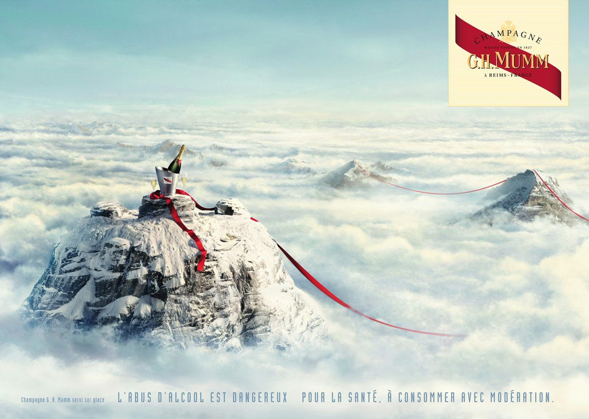 Агентство TBWA: пьем шампанское G.H. Mumm в горахЭтот рекламный принт разработан агентством TBWA для шампанского G.H. Mumm. Красная лента является символом этого шампанского с 18-го века. Французы так и называют его - "cordon rouge" (фр. красная лента). Надпись: "Шампанское G.H. Mumm подается на льду." Агентство: TBWA, Франция Творческий директор: Marie-Catherine Dupuy Арт директор: Javier Rodriguez Копирайтер: Daniel Perez Фотограф: Andy Glass |