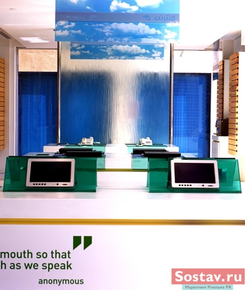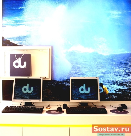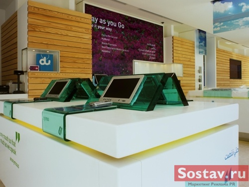 Проект Fitch готов к запуску в Дубае: ритейл-концепция для нового игрока на телекоммуникационном рынке ОАЭ'du' - новый телекоммуникационный оператор ОАЭ. 'du' предоставляет услуги мобильной связи, фиксированной связи и передачи данных, а также развлекательные услуги. Это первая компания, которая собирается нарушить национальную монополию, установленную Etisalat, крупнейшим оператором на рынке ОАЭ в настоящее время. Рынок телекоммуникаций ОАЭ - один из наиболее развитых в мире и приближается к порогу насыщения. Поэтому в основу маркетинговой стратегии 'du' легло решение сфокусироваться на привлечении существующих потребителей Etisalat. Выделиться их на фоне компании позволит революционный подход к ритейлу в сфере телекоммуникаций, который выражается в спектре и качестве предоставляемых услуг, а также в оригинальной концепции торговых точек. Лондонская студия международного брендингового агентства Fitch была назначена консультантом по ритейлу компании 'du' и начала работу над проектом в ноябре 2005 года. Перед Fitch встала задача создания уникальной и инновационной концепции ритейла, которая выходила бы за рамки шаблона традиционных центров абонентского обслуживания. Необходимо было разработать необычный и запоминающийся ритейл-дизайн, создать условия для получения потребителями ярких впечатлений общения с брендом. Концепция, созданная Fitch, направлена на создание у покупателя ощущения того, что розничные точки 'du' являются частью его жизни, необходимым местом для посещения во время перемещения по городу. В них есть все - максимальные возможности для интерактивного общения покупателя с товаром, трансляция новостей и кабельных телеканалов на экранах плазменных панелей в магазинах, всегда свободные бесплатные зарядные устройства для всех моделей телефонов, ежедневные газеты из нескольких стран мира, кофеварки и зоны отдыха, отгороженные от общей зоны магазина. Эти нестандартные решения сочетаются в формате розничных магазинов 'du' с последними достижениями в сфере ритейл-дизайна и мерчандайзинга. Например, дизайн входа в магазин и основных витрин интригует и вовлекает: в витринах расположены экраны, на которых постоянно меняется информация об интересных событиях, модных тенденциях, культурных и спортивных мероприятиях. 'du' держит посетителей в курсе последних событий. Интерьер магазина создает ощущение простора и свежести. Освещение внутри магазина имеет золотой оттенок - оно выгодно выделяет торговое оборудование, на котором демонстрируется продукция. В оформлении магазина активно используются фото ряды и имиджи из самых свежих рекламных компаний отдельных товаров. Все материалы, используемые в оформлении магазина - например, настенные панели или плитка - выбраны по принципу "натуральности" и "естественности". Таким образом, дизайн магазина иллюстрирует основные характеристики бренда 'du' - честность, дружелюбность и открытость. Внутри магазина организованы промо-зоны, с использованием небольших экранов, на которых появляется свежая информация о продуктах и услугах. По мере того, как покупатель перемещается по магазину, бренд начинает с ним общаться - например, через интерактивные панели, посредством которых можно получить и отправить информацию. Вся выставленная в магазине продукция - мобильные телефоны, стационарные теле