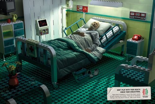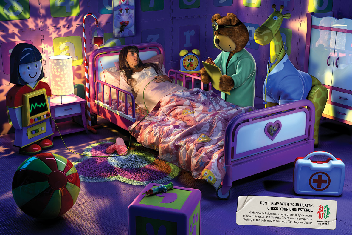 Игры со здоровьем от агентства McCann ПортугалияЭта социальная рекламная кампания создана агентством McCann по заказу Министерства Здравоохранения Португалии, которое всерьез обеспокоено проблемой высокого уровня холестерина в крови жителей. Принты призывают не играть со своим здоровьем, а сделать анализы на холестерин. Надпись: "Не играй со своим здоровьем. Проверь уровень холестерина. Высокий уровень холестерина в крови - одна из главных причин сердечных заболеваний и ударов. У этого нет симптомов. Проверка - единственный способ обнаружить это. Поговори со своим врачом. Министерство Здравоохранения. Агентство: McCann, Португалия Копирайтер: Fabio Seidl Арт директор: Diogo Mello Творческий директор: Diogo Anahory, Jos? Carlos Bomtempo Производство: Nuno Calado Фото: Platinum Иллюстрации: Platinum Менеджер: Ana Pedroso |
