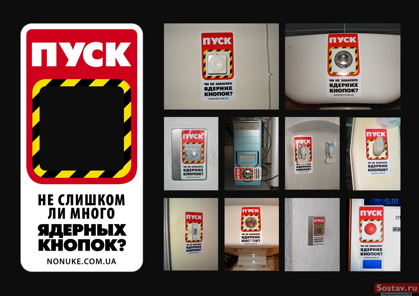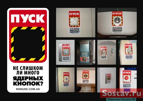 Adventa Lowe и Go Interactive! считают ядерные кнопкиВ рамках социального проекта, призванного заострить внимание на проблеме распространения ядерного оружия в мире, рекламным агентством Adventa LOWE (Ukraine) были разработаны наклейки, превращающие практически любую кнопку в ядерную кнопку с призывом задуматься "Не слишком ли много ядерных кнопок". Заказчиком выступила компания Go Interactive!, создавшая интернет-страницу - www.nonuke.com.ua, где каждый может выразить свое мнение на эту животрепещущую тему. Состав творческой группы Клиент: Go Interactive! Агентство: Adventa LOWE Креативный директор: Алексей Пасичник Копирайтер: Леонид Цымбал, Алексей Пасичник Дизайнер: Вячеслав Ксенофонтов |