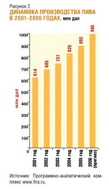 Анализ динамики производства пива показывает опережающие темпы роста по крупным компаниям. В 2005 году лидеры рынка увеличили производство на 11% по сравнению с предыдущим годом, в то время как средний рост производства пива по России в целом составил 8,1%. Малые производители на протяжении последних лет демонстрируют тенденцию к сокращению производства. В 2005 году средние производители снизили выпуск пива на 3,1%.