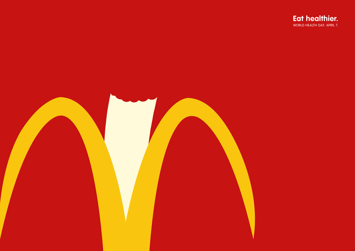 Ешьте здоровоеРекламное агентство Saatchi & Saatchi создало плакат ко всемирному дню здоровья. Попутно контора проехалась по уже порядком поднадоевшей теме здорового питания и пнула холодный труп репутации Макдоналдс.Рекламное агентство: Saatchi & Saatchi, Дубай Креативный директор: Эд Джонс (Ed Jones) Арт-директоры/Копирайтеры: Маханнад Шохо (Muhannad Shono), Нирай Сабарвал (Neeraj Sabharwal) Иллюстратор: Маханнад Шохо (Muhannad Shono) www.saatchi.com KAK.RU |