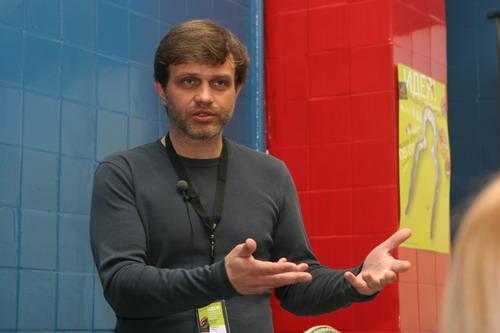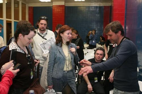 Это я к тому, что, пожалуй, в моей жизни так можно сказать про режиссеров. Какие-то необычные они все-таки люди. Нынче на Идее! их было аж двое, но в отличие от инфернального, брутального и ребячливого Виталика Кокошко, эпатировавшего публику на девятой, оба случились как на подбор, почти что демиурги - Михаил Сегал из Москвы и Дмитрий Хонин из Питера, - обаятельные, не по годам спокойные и мудрые (порой даже чересчур). К вящему недовольству публики, жаждавшей примеров того, как блестящую идею превратить в посредственный результат, но от дипломатичного Дмитрия Хонина так и не дождавшиеся конкретики. Но все равно, слушать их было интересно и поучительно, жаль, не удалось это сделать полностью, как и совсем не удалось увидеть воочию Алексея Фадеева. Поскольку я пыталась одновременно узнать что-то новое по части брендинга на параллельном семинаре, автор которого, честно отрабатывая опоздание, случившиеся вследствие технических проблем, залез не только на обед, но еще и на следующую лекцию.