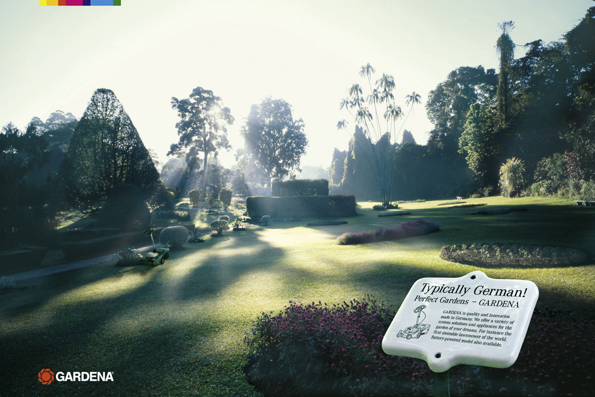 Сад мечты от GardenaЭти прекрасные пейзажи могут быть садом вашей мечты, считает агентство Serviceplan, разработавшее эти рекламные принты для компании Gardena, производителя новых садовых приспособлений. Однако, эти сады не быи бы такими прекрасными без помощи приспособлений Gardena. Надпись: "Типично немецкий. Gardena - качество и новшество, сделанное в Германии. Мы предлагаем разнообразие решений и приспособлений для сада вашей мечты. Например, первая в мире управляемая газонокосилка. Также есть модель с батареей. Например, Регулируемые Пластиковые Грабли как часть комби-системы. Могут быть приспособлены для сгребания мелких или крупных материалов. Например. Брандспойт Trolly. Он автоматически вынимает и скатывает шланг". гентство: Serviceplan, Dritte Werbeagentur, Мюнхен, Германия Творческий директор: Winfried Bergmann, Christoph Everke Арт директор: Matthias Mitterm?lller, Andrea G?rtner Копирайтер: Tim Strathus |