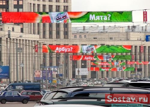 BBDO Moscow заставит почувствовать меняющийся вкус жевательной резинки Wrigley прямо на улицеОАО "Московская Городская Реклама" по заказу рекламного агентства Mediaedge:cia реализовало нестандартный проект на формате транспарантов-перетяжек для компании Wrigley. Целью решаемой маркетинговой задачи является вывод на рынок нового продукта - жевательной резинки Eclipse Fusion "Мята-Арбуз", обладающей уникальным свойством - постепенно меняющимся вкусом. Макет разработан агентством BBDO Moscow. По замыслу агентства потенциальные потребители должны были "почувствовать" изменение вкуса жевательной резинки с помощью чередующихся по ходу движения изображений и слоганов. Отличительной особенностью данной рекламной кампании является то, что ранее транспаранты-перетяжки не использовались для создания подобного эффекта и в таком масштабе, а также тот факт, что группа товаров к которой относитеся Eclipse, традиционно использует в наружной рекламе формат щитов 3х6. Для достижения максимального эффекта был впервые использован формат транспарантов-перетяжек, что в сочетании с нестандарным технологическим приемом позволило достигнуть доминирования бренда на продолжительной территории. Всего по данному проекту было задействовано 11 транспарантов-перетяжек на участке от Тургеневской площади по проспекту Академика Сахарова, пересекая Садовое кольцо и далее по улице Маши Порываевой до площади "трех вокзалов". Рекламная кампания стартовала 11 апреля и продлится 10 дней до 20 апреля включительно. ![]() ![]() |