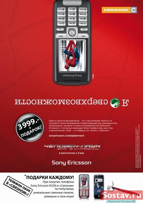 В Россию пришел Телефон-ПаукСтартовала совместная рекламная кампания сети "Связной" и Sony Ericsson, посвященная выходу на российский рынок мобильного телефона Sony Ericsson K320i Spiderman. При покупке телефона Sony Ericsson K320i Spiderman в "Связном" или галереях цифровых технологий "Связной 3" покупатель получит в подарок сменный панели с изображением Спайдермена, java-игрой и телефонным ремешком с названием фильма. "Вывод на рынок Sony Ericsson K320i Spiderman одновременно с премьерой нового кинофильма о Человеке-Пауке - это пример уникального взаимодействия Sony Ericsson, Sony Pictures Entertainment и одного из ключевых игроков на российском рынке мобильного ритейла - компании "Связной". Кроме того, это первый пример эксклюзивной кастомизации телефона для "Связного" в рамках совместного проекта Sony Group. Подобные проекты дают возможность поклонникам кино наслаждаться эксклюзивным тематическим контентом и чувствовать себя ближе к любимым героям" - комментирует Марианна Бакиева, менеджер по маркетингу Sony Ericsson в России. В акции задействованы 1280 центров мобильной связи "Связной" и сетевые радиостанции. Реклама акции появится на стикерах в метрополитенах Москвы и Санкт-Петербурга, в периодических изданиях - ситигидах, телегидах, молодежных изданиях; в сети Интернет. Запланирована реклама на перетяжках в 25 крупных городах РФ и ситиформатах в Москве и Нижнем Новгороде. Рекламные ролики будут транслироваться в кинотеатрах 39 городов РФ в 183 кинозалах перед показами фильма "Спайдермен-3". ![]() |