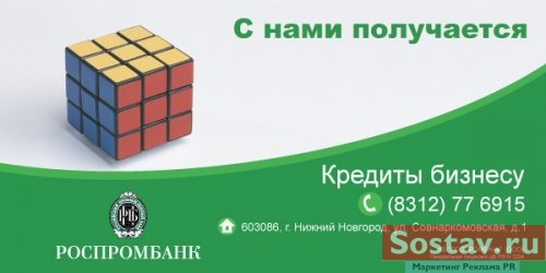 EuroPublicity для Роспромбанка: "С нами получается!"Рекламное агентство полного цикла EuroPublicity разработало креатив и осуществило планирование и размещение рекламной кампании новой услуги Роспромбанка. Новая услуга - "Кредиты для малого и среднего бизнеса" - будет рекламироваться с помощью прессы, интернета и наружной рекламы в Нижнем Новгороде, Перми, Сыктывкаре и Томске.