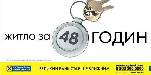 С ипотекой Райффайзен Банк Аваль можно забыть свой адрес. Новая кампания Provid/BBDОС начала апреля Райффайзен Банк Аваль вышел с новой рекламной кампанией по продвижению ипотечного кредита - "Жилье за 48 часов". Кампания разработана рекламным агентством Provid/BBDO и включает в себя размещение наружной рекламы, рекламы в прессе и на телевидении. Суть рекламируемой услуги доносит слоган кампании "Жилье за 48 часов". По информации, полученной Райффайзен Банком Аваль от своих клиентов, при получении ипотечных кредитов их больше всего волнует экономия времени. Минимизация бюрократических процедур и быстрота рассмотрения заявок на кредит - весомый плюс при выборе банка-партнера.