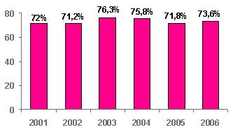 Чудесный вкус, бодрящий аромат. Рынок потребления растворимого кофе в КазахстанеУтро практически каждого человека начинается с чашечки кофе. Удивительный напиток с чудесным вкусом и бодрящим ароматом, дарящий ощущение бодрости и прилив жизненных сил, впервые стал известен в IX веке в Эфиопии благодаря местным монахам. Появившись в Европе примерно 300 лет назад, этот напиток очень быстро завоевал всеобщее признание. Что же касается кофе растворимого, то его относят к одним из главных изобретений человечества в ХХ столетии. Впервые растворимый кофе был изготовлен американским химиком японского происхождения Сатори Като. Первые промышленные образцы быстрорастворимого напитка появились в продаже в 1909 году.Но не сразу американцы оценили по достоинству кофе в таком виде. Людей, покупающих растворимый кофе, поначалу даже принято было считать ленивыми и неэкономными. Сегодня, все больше людей отдают предпочтение именно растворимому кофе. По данным исследования Media Marketing Index1 (сентябрь 2006 года), проводимого компанией TNS GALLUP MEDIA ASIA, в 2006 г. число потребителей растворимого кофе составило 2685, 57 тыс. человек, что составило 73,6% от всего населения Казахстана в возрасте 15 лет и старше (см. Диаграмма 1). Диаграмма 1: Потребление растворимого кофе. Динамика 2001-2006 гг. 1 По данным MMI 2006 - опрос проводился в 11 городах Казахстана с населением 200 тыс. и более, среди людей в возрасте от 15 лет и старше. Объем выборки составил 2500 респондентов. Среди потребителей растворимого кофе встречается наибольшее количество активных потребителей, причем их число из года в год увеличивается. В 2006 году по сравнению с 2001 годом прирост составил 33% (см. таблицу 1). Таблица 1: Типы потребителей растворимого кофе. Динамика 2001-2006 гг.