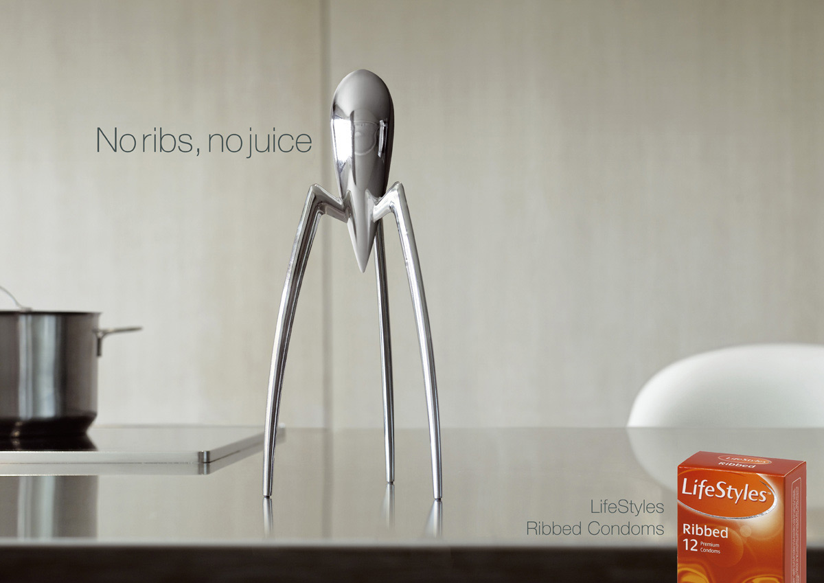 Неправильные соковыжималки в рекламе презервативов LifeStyles от агентства MortierbrigadeХотите сока? Тогда вам нужна соковыжималка. Но у вас ничего не получится, если ваша соковыжималка не будет ребристой. И то же самое может случиться, если ваши презервативы не ребристые, считает бельгийское агентство Mortierbrigade, сравнившее на этих плакатах презервативы с соковыжималкой. Надпись: "Нет ребристости, нет сока Презервативы LifeStyles Ребристые." Клиент: Ansell/ Ellen Mombers Агентство: Mortierbrigade, Брюссель, Бельгия Творческая команда: Niels Schreyers, Koenraad Lefever Фотограф: Koen Demuynck |