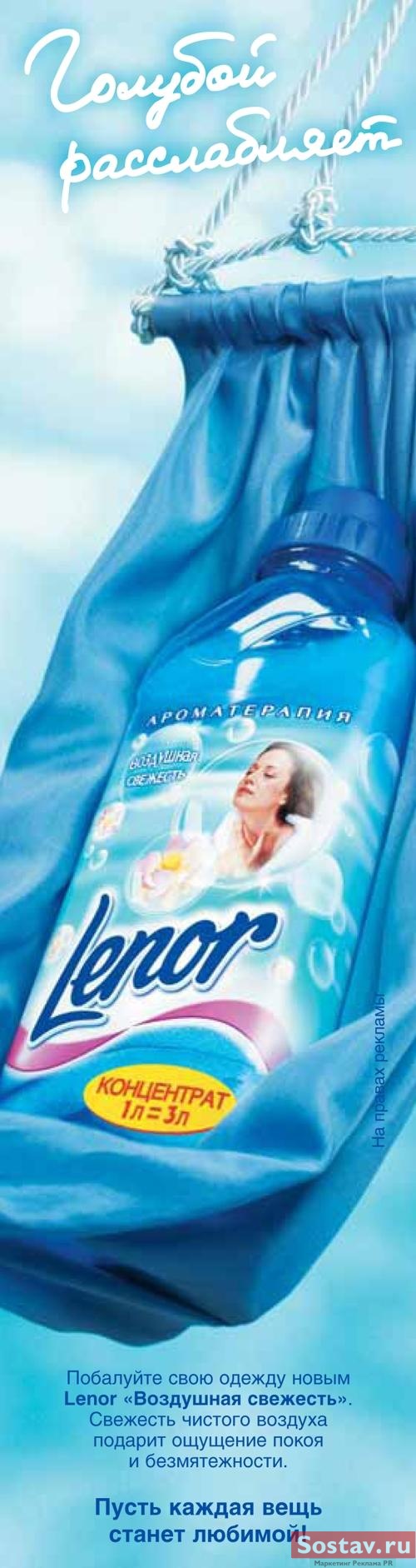 Рекламное агентство Grey Worldwide Moscow запустило новую рекламную кампанию для бренда Lenor компании Procter&GambleЦель кампании - сообщить потребителям о выходе новой серии Lenor "Ароматерапия" и рассказать об особенностях продукта. В рамках кампании агентством были разработаны и уже вышли в свет три макета: "Солнце Андалузии", "Воздушная свежесть" и "Активная свежесть". Олег Лапшин, креативный директор агентства Grey Worldwide Moscow: "Мы постарались найти некий объединяющий элемент, с помощью которого женщины с первого взгляда понимали бы, о какой именно серии идет речь. Агентство предложило использовать своего рода мнемонический прием для того, чтобы потребители могли считать и легко запомнить основное сообщение. Каждый запах в линейке Lenor имеет свой цвет и одновременно создает определенное настроение". В ближайшем будущем потребителей ожидает знакомство с новыми продуктами Lenor серии "Ароматерапия". Медиаразмещением занималось агентство MediaCom CIS. Состав творческой группы Творческий состав агентства Grey Worldwide Moscow: Автор идеи - Олег Лапшин Креативный директор - Олег Лапшин Арт-директор - Катя Шарф Копирайтер - Алексей Лобанов Management Supervisor - Снежана Дубинина Account Executive - Юля Мартынова Продюсер - Галина Эвентова Продакшен - "Buzz- production" Фотограф - Евгений Военский Продюсер - Марина Шепталина |