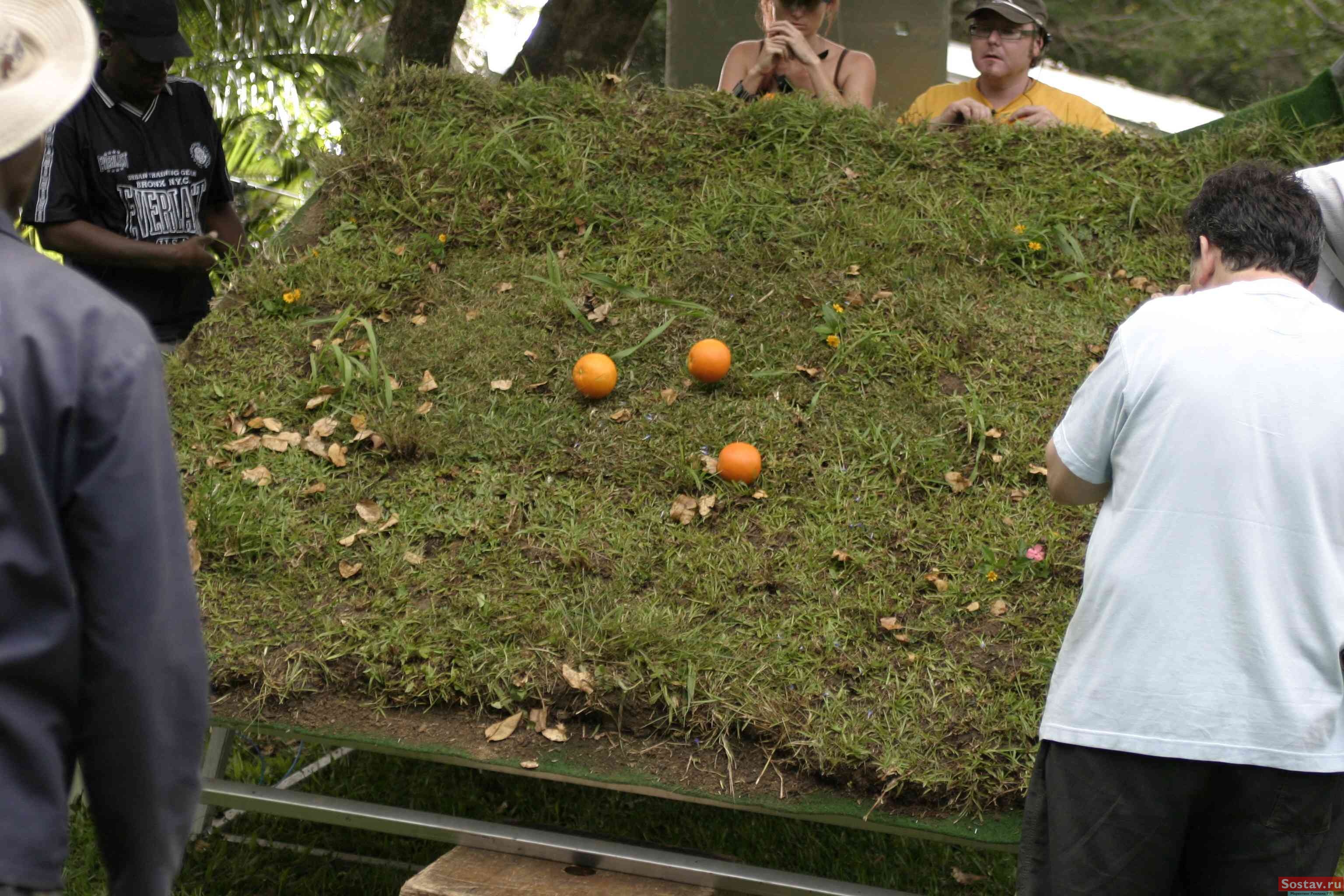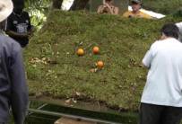 Александр Родионов: "Самой трудной задачей для нас было отыскать "правильную" реку. Нам была нужна волшебная река, в меру полноводная и, несомненно, кристально чистая. Мы объездили все побережье, а в итоге нашли ее прямо возле нас, недалеко от отеля. А потом мы бросали апельсины в реку, они доплывали до водопада и падали вниз со стометровой высоты. Это привлекало толпы туристов. Согласитесь, что не каждый день с водопада падает грузовик апельсинов. Ну а местные жители, наверное, еще долго будут помнить наши съемки: ведь почти неделю местные аборигены питались свежими фруктами от создателя".