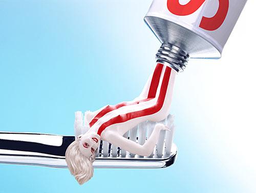 Яркость цвета, искра, динамика позы, растянутая до ушей улыбка — всё это должно заставить шатающихся офисных клерков подрасправить плечи и запомнить, что созерцание рекламы именно «этого напитка» на несколько секунд приподняло его макушку над остальными макушками в толпе.