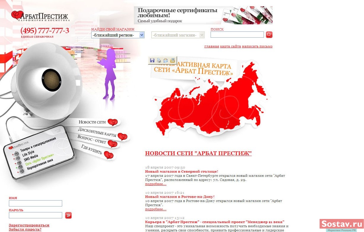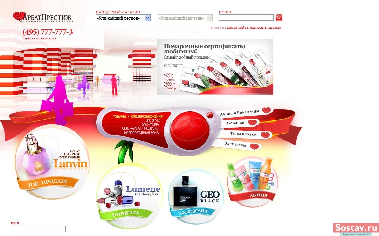Куда летишь? На новый сайт "Арбат-Престиж"!Агентство i-Partner разработало новую специфику сайта для компании "Арбат-Престиж". Сайт призван отразить весь комплекс информации о торговой сети. Как сообщил творческий директор агентства i-Partner Вячеслав Ткаченко: "Новый сайт сильно отличается от старого, который был придуман около пяти лет назад. Мы реализовали новые разделы, скорректировали информацию под запросы читателей". На сайте можно найти полную информацию обо всех акциях и спецпредложениях компании, а также ознакомиться со страницами журнала "Арбат-Престиж". Комплексная информация представлена в четырех основных разделах, созданных в виде "пробников": "Акции и викторины", "Новинки", "Топы продаж" и "Эксклюзив". Разработчики позаботились и о корпоративном разделе, где можно узнать о компании и получить дополнительные сведения о проходящих программах. Главной задачей агентства стала однозначная идентификация бренда. В результате многие визуальные решения легли в основу телерекламы "Арбат Престиж". Новый сайт призван значительно расширить возможности компании "Арбат Престиж" по коммуникации со своей аудиторией и способствовать увеличению ее лояльности, сообщают в пресс-службе агентства. |