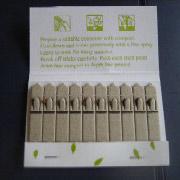 По размерам и виду — это обычный (плоский) коробок картонных спичек, в котором покупатель найдёт их 10 штук. Но спички эти огня не дают. Зато — позволяют вырастить небольшой садик.