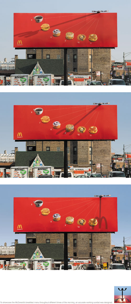 Award: Grand Clio Category: Retail Food Advertiser/Product: McDonald's Title: Sundial Advertising Agency: Leo Burnett, Chicago Chief Creative Officer: John Condon Creative Directors: John Montgomery, Mark Tutssel Copywriter: Gary Fox-Robertson Art Director: Vince Cook