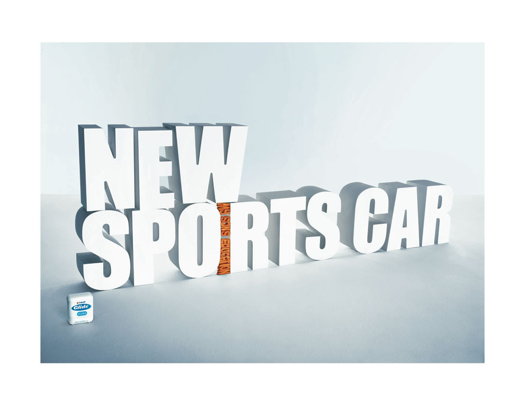 Award: Gold Category: Campaign Advertiser/Product: P&G - Glide Dental Floss Title: My Girlfriend Title: Music Title: New Sports Car Advertising Agency: Saatchi & Saatchi, New York Creative Directors: Tony Granger, Jan Jacobs, Leo Premutico Copywriter: Icaro Doria Art Director: Menno Kluin Print: