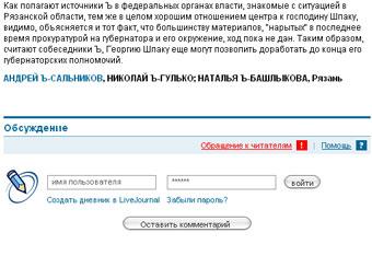 Комментировать "Коммерсант" смогут только пользователи ЖЖОнлайн-форумы издания "Коммерсант", предназначенные для обсуждения материалов газеты, теперь поддерживают авторизацию службы дневников LiveJournal, сообщается на сайте издательского дома. С 21 мая 2007 года оставлять комментарии и общаться на сайте издания смогут только владельцы учетных записей LiveJournal. Регистрация, распознавание пользователей и хранение комментариев обеспечивается серверами компании "Суп", обслуживающей русскоязычный сегмент "ЖЖ". "Коммерсант" оставляет за собой право модерирования обсуждений и блокировки пользователей, нарушающих правила общения, регламентированные в LiveJournal. Напомним, что также стало известно о запуске сайта Livejournal.ru - справочно-навигационного сервиса для отечественных блоггеров. В рамках партнерского соглашения между компаниями "Яндекс" и "Суп", портал LiveJournal.ru предоставляет возможность осуществлять поиск по блогам и русскоязычному интернету с помощью поисковой машины "Яндекса".![]() LENTA.RU |