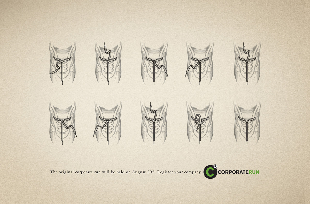 Корпоративный забегБразильцы Young & Rubicam нарисовали вот такой плакат-афишу мероприятия Corporate run. Всё прекрасно изобразили и заставили офисных работников ещё раз закатить глаза при виде несмешной шутки с галстуками.Рекламное агентство: Young & Rubicam, Бразилия Креативные директоры: Томас Лоренте (Tomas Lorente), Андре Н Нассар (Andre Nassar), Марсело Рейз (Marcelo Reis) Артдиректор: Тиаго Лакорте (Thiago Lacorte) Копирайтер: Габриэль Шмитт (Gabriel Schmitt) Иллюстратор: Юлиус Ота (Julius Otha) www.yrbrasil.com.br KAK.RU |