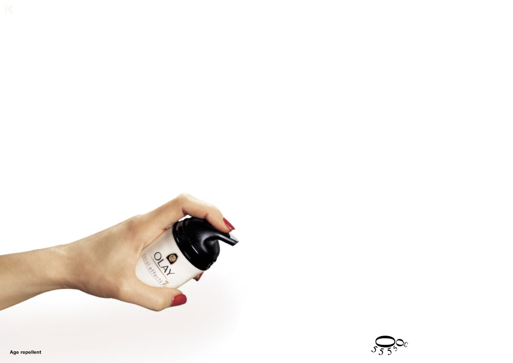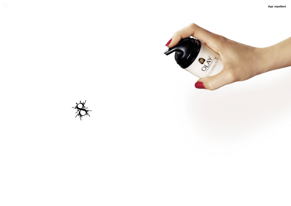 Агентство Saatchi & Saatchi и косметика Olay борются с насекомымиНа этих принтах британское агентство Saatchi & Saatchi проводит параллель между кремом Olay и средством от насекомых, ведь этот крем также эффективно уничтожает морщины, как и все эти вещества уничтожают насекомых. Надпись: "Средство для уничтожения возраста" Агентство: Saatchi & Saatchi, Лондон, Великобритания Главный творческий директор: Kate Stanners Копирайтер: Andrew Petch, Graham Lang, Esteban Franco Арт директор: Graham Lang, Andrew Petch, Nour de Silva |