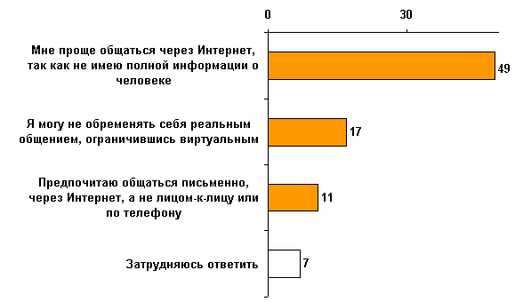Две трети россиян не пользуется службами Интернет-знакомствВ апреле текущего года в ходе онлайн-опроса, проведенного Ромир, выяснилось, что службами Интернет-знакомств пользуется лишь треть участников опроса. Причем чаще это москвичи (71%), молодые люди в возрасте от 18 до 24 лет (41%). Согласно результатам исследования, пол респондента не влияют на решение не пользоваться службами Интернет-знакомств. Примерно одинаковое число женщин (67%) и мужчин (68%) ответили «Нет» на вопрос: «Пользуетесь ли Вы службами Интернет-знакомств?». Социальный статус, уровень дохода и образование также не влияет на выбираемые респондентом способы знакомства. В ходе исследования было опрошено 1461 человек в возрасте от 18 лет и старше. Статистическая погрешность не превышает ±2,6%. В процессе исследования респондентам был задан вопрос: Пользуетесь ли Вы службами Интернет-знакомств? Ответы на него распределились следующим образом % ![]() Несмотря на время новейших технологий, люди, судя по результатам исследования Ромир, все еще предпочитают знакомиться в реальности, а не виртуально. 68% респондентов вне зависимости от пола, социального статуса, образования, уровня дохода не пользуется службами Интернет-знакомств. Оказалось, что данная услуга более или менее интересна молодым людям в возрасте от 18 до 24 лет (41%), проживающим в столице (71%). Респондентам предложили на выбор: На каких из перечисленных сайтах знакомств Вы зарегистрированы, где размещена Ваша анкета? Ответы на него распределились следующим образом % ![]() Согласно результатам опроса, самым популярным сайтом знакомств среди пользующихся данной услугой является сайт www.love.mail.ru (43%). На втором месте в рейтинге стоит www.loveplanet.ru (29%). Служба знакомств Mamba замыкает тройку лидеров. Здесь зарегистрирован каждый пятый опрошенный. Во вторую группу входят такие сайты знакомств, как www.dating.ru (18%), www.love.rambler.ru (15%). Сайт для одиночек (singles.ru) оказался наименее интересен участникам опроса. Респондентам был задан вопрос: Укажите, пожалуйста, причины, по которым Вы пользуетесь службами Интернет-знакомств? Ответы на него распределились следующим образом % ![]() Практически каждый второй опрошенный плюсом в общении через Интернет, судя по всему, считает отсутствие каких-либо условностей, которых невозможно избежать в реальном общении. Заметим, что чаще так отвечали петербуржцы (52%), чем москвичи (45%) вне зависимости от пола, возраста, уровня образования, социального статуса и дохода. 17% опрошенных решили, что реальное общение для них более обременительно, чем виртуальное. И 11% респондентов предпочитают общаться письменно через Интернет, а не лицом к лицу или по телефону. На вопрос «Назовите три главных причины, по которым вы не пользуетесь сайтами знакомств?» более половины респондентов ответило, что они не нуждаются в помощи, чтобы познакомиться с новыми людьми (80%). Причем чаще так отвечали мужчины (83%), респонденты с доходом более 25 тысяч рублей на одного члена семьи (84%), руководители (81%) и квалифицированные специалисты (81%). Вторым по популярности ответом стал: «Я не настолько обделен(а) вниманием». Две трети респондентов выбрали именно его. И наконец, ответ «Я постоянно встречаюсь с новыми людьми в реальности» занял третье место из предложенного списка (64%). В группу причин, по которым россияне избегают виртуальных знакомств вошли следу
