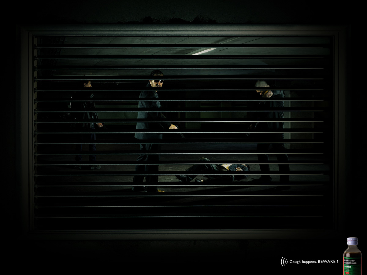 Агентство Contract Advertising для сиропа от кашля Leopard: кашель смертельно опасен!В жизни бывают такие моменты, когда обычный кашель смертельно опасен. Несколько таких примеров приводит таиландское агентство Contract Advertising в созданной им рекламной кампании сиропа от кашля Leopard. Например, ревнивый муж может найти вас в шкафу или мафиози заметить, что вы стали свидетелем убийства. Надпись: "Кашель случается. Остерегайтесь!" Агентство: Contract Advertising, Таиланд |