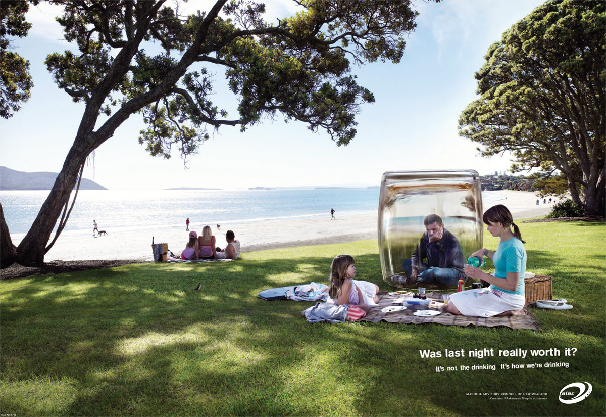 Люди в стаканах в рекламной кампании от агентства Clemenger BBDO, Новая Зеландия, для AlacОказывается, что пить спиртные напитки можно, ведь все дело в том, как мы пьем их. Именно эту идею преподносит нам агентство Clemenger BBDO, разработавшее эту рекламную кампанию для Alcohol Advisory Council of New Zealand (Совета Новой Зеландии по консультациям, связанным с алкоголем). Надпись: "Прошлая ночь действительно стоила этого? Дело не в выпивке - Дело в том, как мы пьем Alcohol Advisory Council of New Zealand" Агентство: Clemenger BBDO, Новая Зеландия |