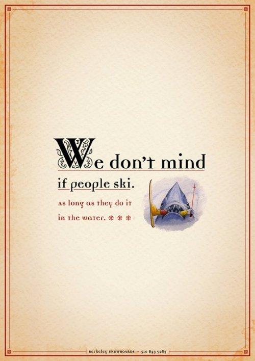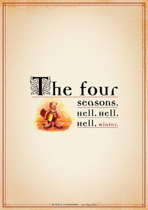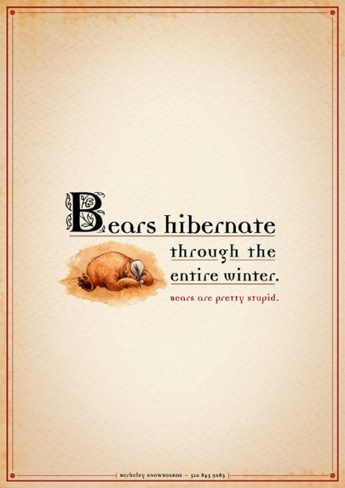 Сказки о сноубордеАгентство Collision придумало совершенно прекрасные плакаты для Berkeley Snowboards. Они перекликаются с настроением сноубордистов, создавая некое ощущение клановости, избранности. Самое забавное, что кампания для сноубордов, прославляющая зиму, была сделана в Калифорнии, самом тёплом и солнечном месте Америки. Плакаты, как можно заметить, зачем-то выполнены в стилистике книги сказок.![]() ![]() ![]() Копирайтер: Алан Менейсей (Alan Manaysay) Артдиректор/Иллюстратор: Тирапол Кумсорн (Theerapol Koomsorn) adsoftheworld.com KAK.RU |