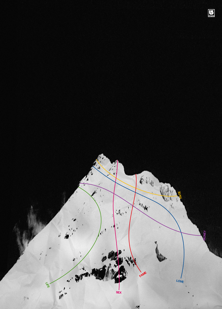 Гадание по горе в рекламе Burton от агентства FP7Арабское агентство FP7, создавая рекламу для известной марки горнолыжной одежды и сноубордов Burton, сравнило склон горы с рукой. Специалисты утверждают, что по руке можно очень многое узнать о человеке, узнать обо всей его жизни. Видимо, агентство считает, что с продукцией Burton, вся ваша жизнь будет связана с горнолыжными склонами. Надпись: "Жизнь, секс, слава, любовь, деньги, судьба" Агентство: FP7, Дубай, ОАЭ Творческий директор: Marc Lineveldt Арт директор: Matthew Jones Копирайтер: Vincent Fichard |