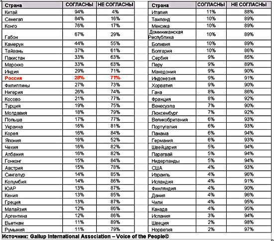 Более половины россиян полагает, что для девочек образование так же важно, как и для мальчиковРомир, эксклюзивный представитель ассоциации Gallup International в России и СНГ, совместно с исследовательскими компаниями других стран принял участие во всемирном исследовании Voice of the People-2006, в ходе которого было опрошено 60 000 человек из 64 стран мира. Их мнение репрезентирует взгляды более миллиарда жителей Земли. Один из вопросов, заданных респондентам во время исследования прозвучал так: «Согласны ли Вы с тем, что образование более важно для мальчиков, чем для девочек?» По итогам опроса выяснилось, что семь респондентов из десяти (70%) считает, что образование так же важно для девочек, как и для мальчиков, в то время как 26% полагает, что мальчикам оно более необходимо. В России в рамках проекта по национальной репрезентативной выборке было опрошено свыше 1500 человек старше 18 лет, проживающих в более чем 100 городах и населенных пунктах страны. Мнения россиян незначительно отличаются от взглядов жителей планеты в целом. Так, 28% россиян согласились с тем, что мальчикам образование нужнее, чем девочкам. 71% респондентов выбрали иной вариант ответа… Ответы на вопрос распределились следующим образом % ![]() Согласно результатам исследования практически три четверти населения планеты (70%) полагает, что определять необходимость получения образования по половому признаку неправильно. При этом четверть опрошенных считает, что мальчикам все же образование нужнее, чем девочкам и 4% затрудняются ответить на данный вопрос. Высказанные мнения, как оказалось, практически не зависят от пола, возраста, образования и занятости респондента. При этом больший процент людей, полагающих, что образование все же важнее для мальчиков, оказался среди интервьюируемых со средним доходом (31% против 17% респондентов с высоким доходом). Более половины респондентов (81% респондентов с высоким доходом против 66% со средним доходом) решило для себя, что образование важно как для мальчиков, так и для девочек. Если взглянуть на результаты опроса с точки зрения религиозных верований, то станет ясно, что вне зависимости от вероисповедания большинство представителей той или иной религии склоняются к мысли, что важно получать образование не только мальчикам, но и девочкам. Большинство согласных с данной идеей оказалось среди протестантов (91%) и иудеев (97%). В то время как среди мусульман (26%) и индуистов (28%) были обнаружены наивысшие показатели несогласных с высказыванием. ![]() Выяснилось, что в целом во всех регионах мира существует сильное противостояние дискриминации женщин в праве на образование. Наибольший процент граждан, выступивших за равность возможностей в получении образования вне зависимости от пола, зафиксирован среди жителей Северной Америки (94% против 4% согласившихся с предложенным тезисом), Западной Европы (92% против 7%) и Латинской Америки (88% против 10%). Необходимо отметить, что на результаты в странах Тихоокеанского региона вероятнее всего в значительной мере повлияли показатели Китая, где 94% опрошенных считает, что образование важнее для мальчиков, чем для девочек. Во всех остальных странах большинство придерживается противоположного мнения. Так, лишь в четырех из 64 стран большинство опрошенных согласились с тем, что для мальчиков образование нужнее: Китай (94%), Сенегал (84%