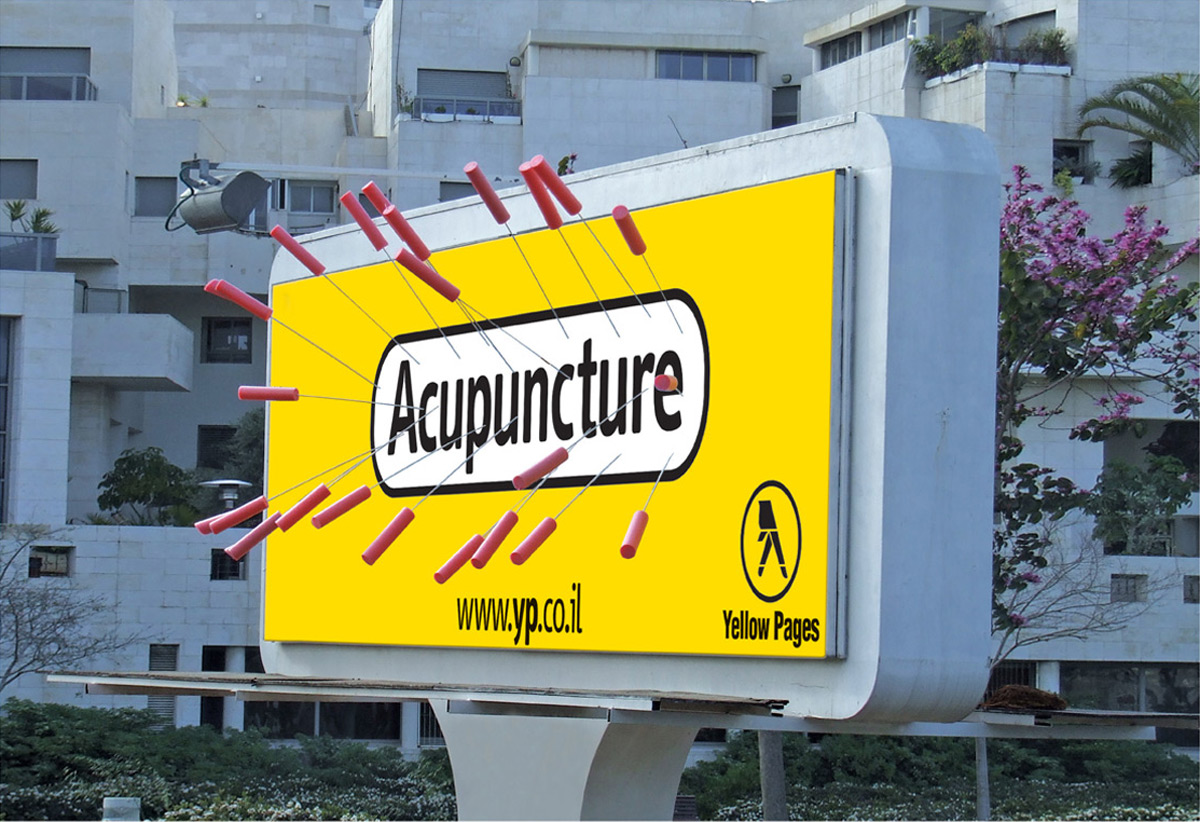 Yellow Pages: найдется все!В справочнике "Желтые страницы" (Yellow Pages) можно найти огромное количество полезной информации. А израильское агентство Y&R решило привести примеры этому с помощью очень необычных рекламных щитов: они наглядно показывают, что можно сделать с помощью Yellow Pages. Надпись: "Терапии для семейных пар / Краны / Глажка / Датчики дыма / Иглотерапия / Обрезание / Зеркала / Адвокаты" Агентство: Y&R, Израиль Творческая группа: Gideon Amichay, Tzur Golan, Yariv Twig, Shirley Bachar, Eyal Padan, Hadar Orpaz |