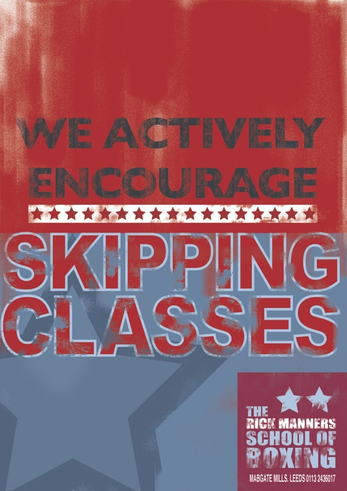 Трус не играет в хоккейБританское агентство Poulters создало для боксёрской школы Рика Мэннерса серию плакатов. Поскольку это всё-таки школа, плакаты активно эксплуатируют тему занятий, школьных наказаний и прогулов. Сами картинки будто бы напечатаны на боксёрских грушах: они с любовью истёрты и состарены. Замое забавное, что при взгляде на них сразу вспоминается не что-то вроде «Солдаты вы или не солдаты, мужчины или не мужчины?!», а старая песня про труса, которыйкак всем известно, не увлекается игрой в хоккей.