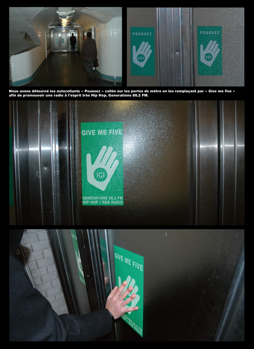 Рекламная кампания радио Generations 88,2 FM от агентства JWT ParisРадио станция Generations 88,2 FM - это молодежное радио, которое крутит в эфире hip-hop и r'n'b музыку. Французское агентство JWT так представляет себе рекламную кампанию для этой станции. Одной из частей кампании стало размещение на дверях в метро таблички, в месте, которое люди не могут не толкнуть при проходе. На принте же вам предлагают прослушать душеспасительный эфир в воскресенье. Библия, если присмотреться, предстает в качестве магнитолы. Надпись: "Давай пять" " Городское евангелие. Воскресенье в 10 утра" Агентство: JWT, Париж, Франция Арт директор: El Zoghlami Ahmed Копирайтер: Hassan Hadi Иллюстратор/Фотограф: Jerome Gonfond |