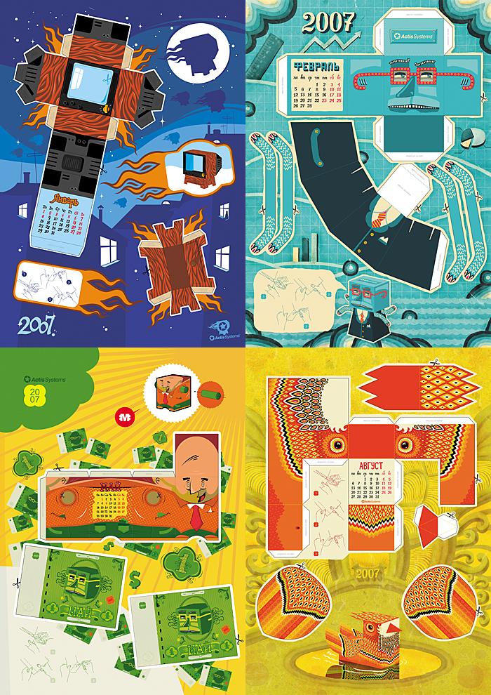| Описание творческой идеи, слоган: | Каждую из иллюстраций можно также вырезать и создать из нее "календарную бумажную фигурку" |
