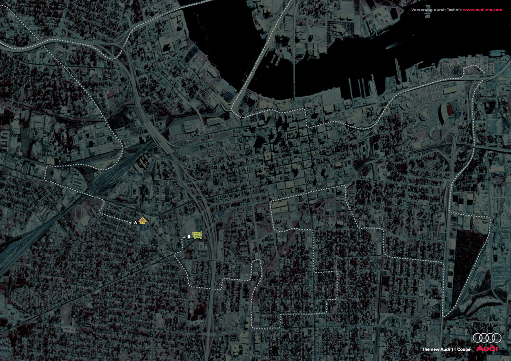 Оптимальный маршрут показывает Grey Worldwide ОАЭ в рекламе Audi TTОт вашего дома до работы, магазина или спортивного зала добираться всего пять минут? И вы рады этому? А вот хозяева автомобиля Audi TT, по мнению агентства Grey Worldwide, не согласятся с вами. Даже если до места назначения рукой подать, они предпочтут объехать весь город, ведь они едут на Audi TT. Надпись: "Новый Audi TT купе." Агентство: Grey Worldwide, Дубай, ОАЭ Творческий директор: Alisdair Miller Арт директор: Prasad Pradhan Копирайтер: Murugan R.S. |