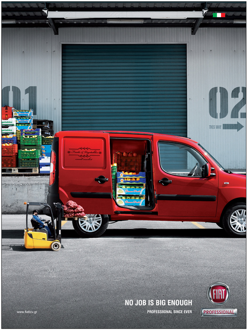 Агентство Leo Burnett: автомобили Fiat вырастают в глазах своих хозяевКак утверждает греческий филиал агентства Leo Burnett, для грузовых моделей автомобиля Fiat не существует слишком много работы. Ведь сами размеры и вместительность этих автомобилей поражают. Пусть они и не такие большие, как на этих принтах, но их владельцам, судя по всему, кажется именно так. Надпись: "Нет слишком много работы Профессионально с самого начала." Агентство: Leo Burnett, Афины, Греция Творческий директор: Giannis Sorotos Арт директор: Nassos Apollonatos Копирайтер: Kostas Binis Иллюстратор/Фотограф: Kitao |