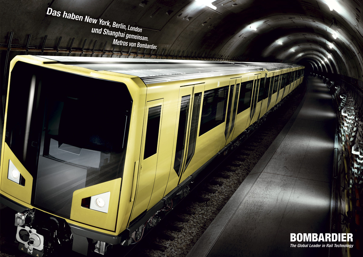 Рекламная кампания транспорта Bombardier от агентства BUTTER.BerlinКомпания Bombardier специализируется на производстве рельсового транспорта, например, метро, трамваи, локомотивы и т.д. Эта кампания, созданная немецким агентством BUTTER.Berlin направлена на то, чтобы показать все преимущества продукции Bombardier: красоту, популярность, надежность и технический прогресс. Надпись: "Вот то, что объединяет Нью-Йорк, Лондон и Шанхай. Вагоны метро от Bombardier. Начиная с миллионов километров миссия это - двигаться на локомотивах TRAXX от Bombardier. Непревзойденно в часы пик и любые другие часы. Трамваи FLEXITY от Bombardier. Последний шаг перед телепортацией и путешествиями во времени. Скоростные поезда ZEFIRO от Bombardier. Bombardier. Мировой лидер в технологиях рельсового транспорта" Агентство: BUTTER.Berlin, Германия Творческий директор: Timm Holm, Michael Preuss Арт директор: Timm Holm, Bjorn v. Buchholtz Копирайтер: Michael Preuss Фотограф: Andreas Muhe |