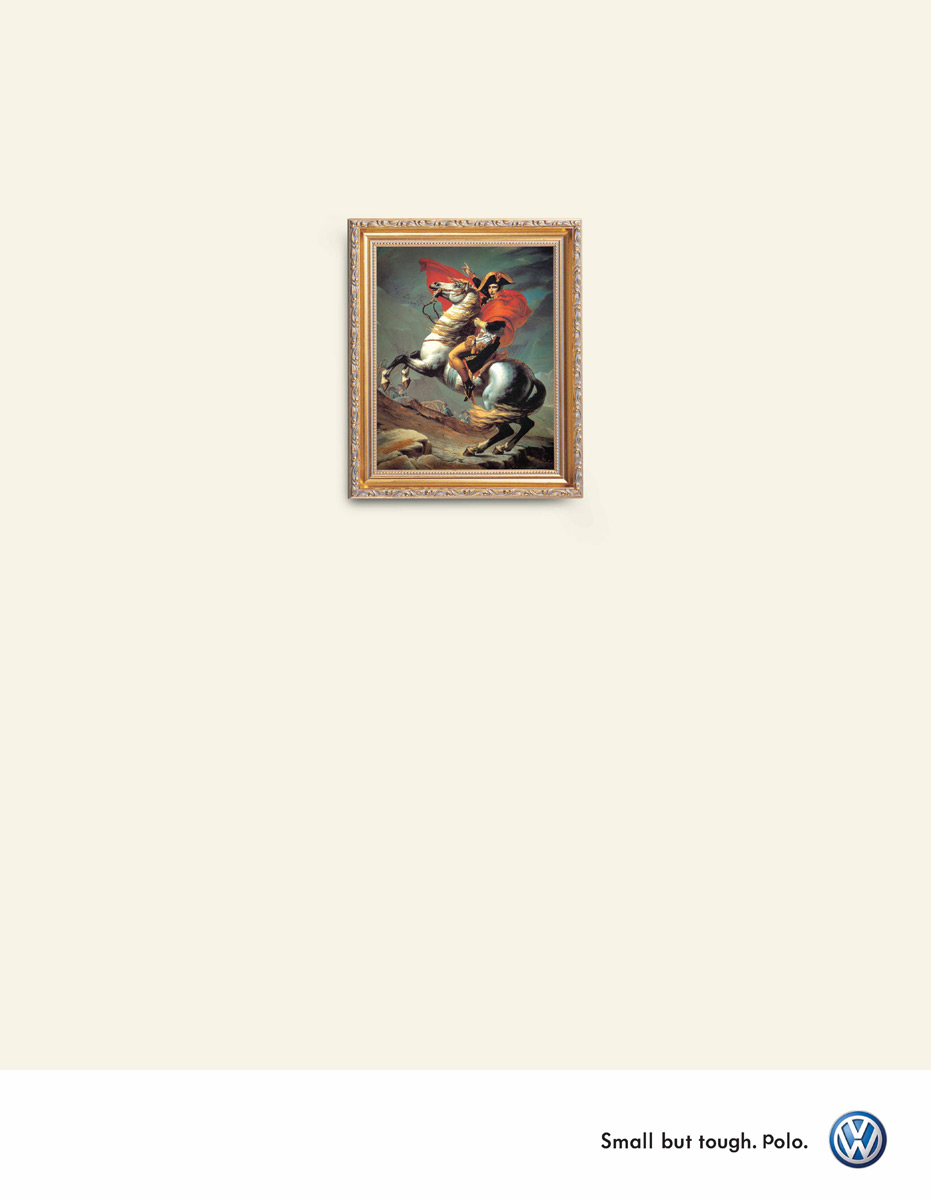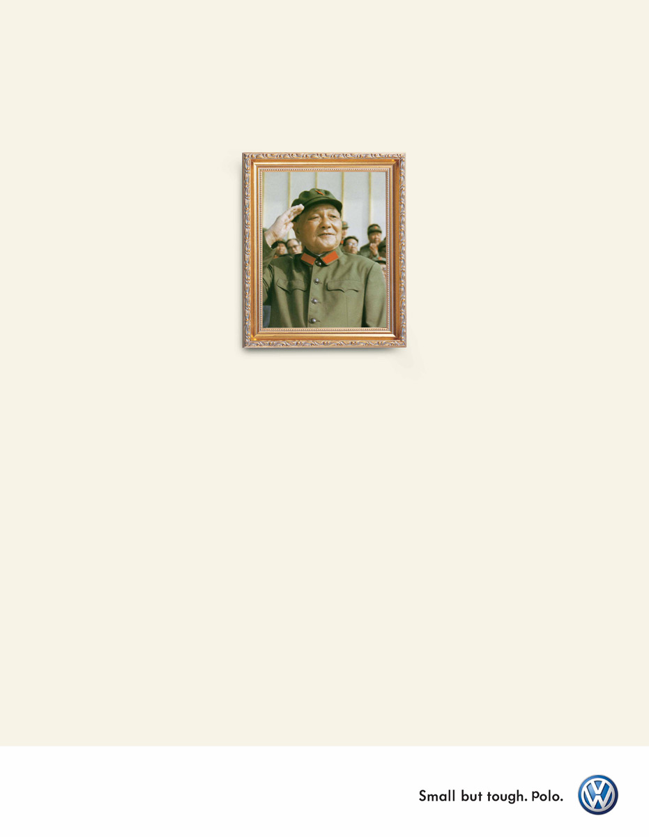 Volkswagen Polo можно сравнить с НаполеономВообще, сравнить автомобиль с человеком сложно, но агентство Lanmeng сделало это. Причем оно сравнивает автомобиль Volkswagen Polo не с обычными людьми, а с легендарными личностями, такими как Наполеон или Мао Цзэдун. И тот и другой не вышли ростом, но при этом были сильны и упорны, также как и рекламируемый автомобиль. Надпись: "Маленький, но сильный. Polo." Агентство: Lanmeng, Шанхай, Чина Творческий директор: Zhangqiang, Nm Jiang Арт директор/Копирайтер/Иллюстратор: Nm Jiang |