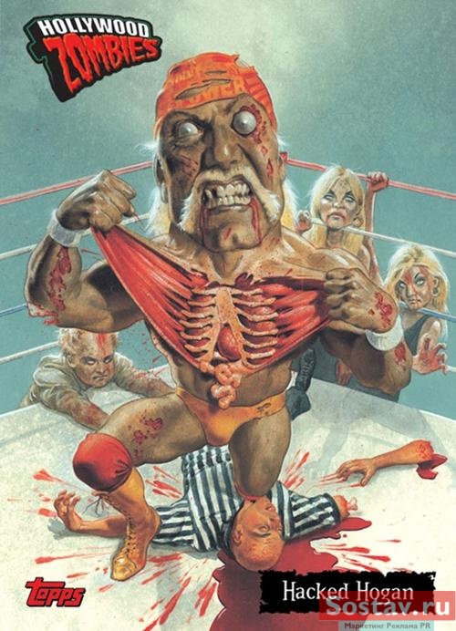 Всего в серии 72 карточки с изображением звезд-зомби, в числе которых такие знаменитости, как Халк Хоган, Бритни Спирс, Том Круз и Пэрис Хилтон. Учинило это безобразие издательство Topps, подкорректировав имена звезд согласно общему зомби-антуражу (и, очевидно, для защиты от судебных исков). Так, Элайджа Вуд стал Elijah Deadwood, а автолюбительница Пэрис сменила фамилию на Hellton.