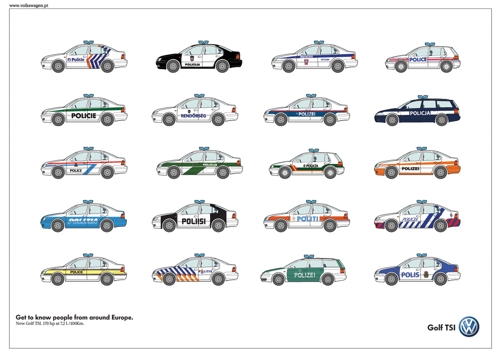 Агентство DDB Португалия считает, что Volkswagen Golf TSI нравится полицииПортугальское агентство DDB сообщает нам, что, оказывается, большинство европейской полиции разъезжает по дорогам Европы на автомобилях марки Volkswagen Golf TSI. Этому может быть много причин: скорость, надежность и т.д. При всем при этом агентство предлагает нам "знакомиться с людьми", видимо, в тех местах, куда вас доставит полицейский Golf. Надпись: "Знакомьтесь с людьми из окружающей Европы" Агентство: DDB, Лиссабон, Португалия Творческий директор: Jorge Teixeira Арт директор: Nuno Goncalves Копирайтер: Nelson Quadros |