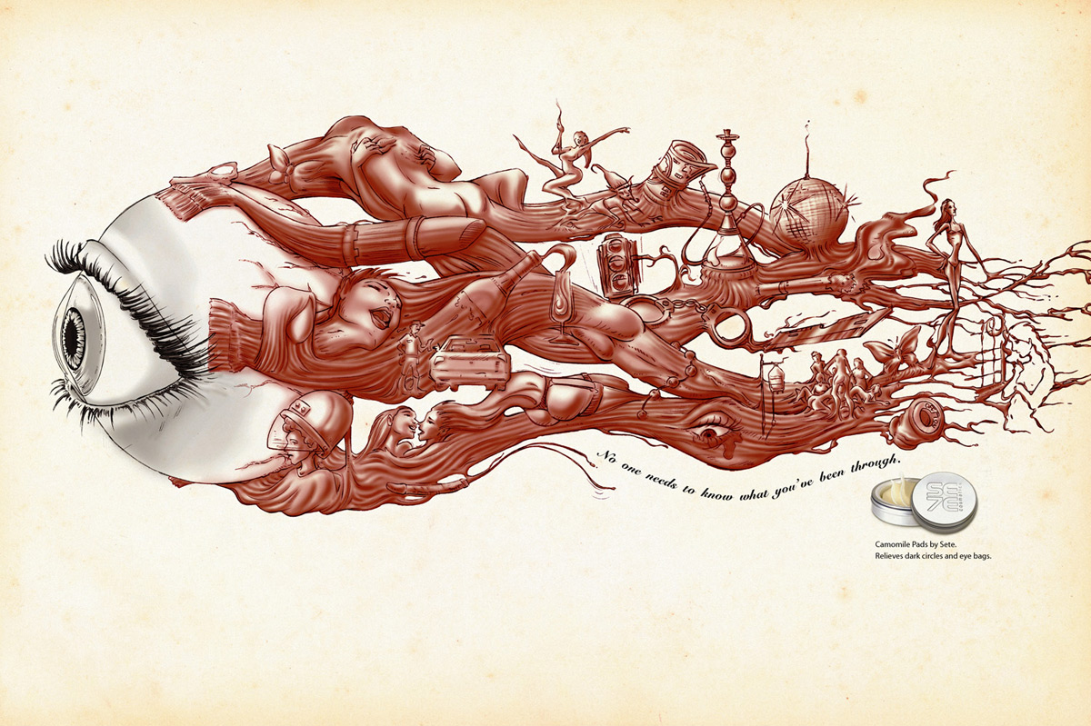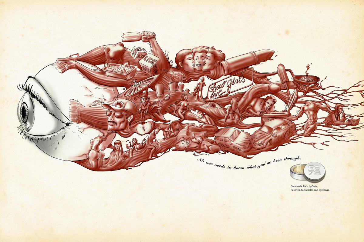 О чём ты думаешь сейчасАгентство ag_407 создало два плаката, рекламирующих расслабляющие влажные салфетки с экстрактом ромашки. Считается, что напряжённый мыслительный процесс очень сильно отражается на состоянии лица. Появляются синие круги и мешки под глазами. Товарищи из ag_407 утверждают, что это абсолютно лишние вещи, и им не должно существовать. Собственно, ромашковые салфетки и убирают пресловутые синие круги и мешки из под глаз. Мучаться проблемами никто не запрещает, но знать об этом всем — не обязательно.Рекламное агентство: ag_407, Бразилия Креативные директоры: Андре Фелипе (AndrИ Felipe), Сельма Наваро (Selma Navarro) Артдиректор: Габриэль Матар (Gabriel Mattar) Копирайтер: Рикардо Вольф (Ricardo Wolff) Иллюстратор: Cafeu www.ag407. com. br KAK.RU |